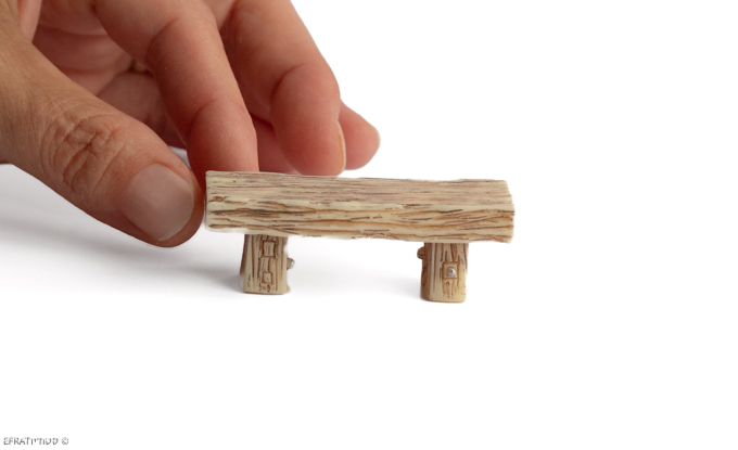 ספסל קטן דמוי עץ קסום במיוחד, בגודל כ־1.6×5.6 ס"מ, מגיע בשלושה גוונים טבעיים של עץ – ומשתלב בצורה מושלמת בכל עולם יצירה מהאגדות.
